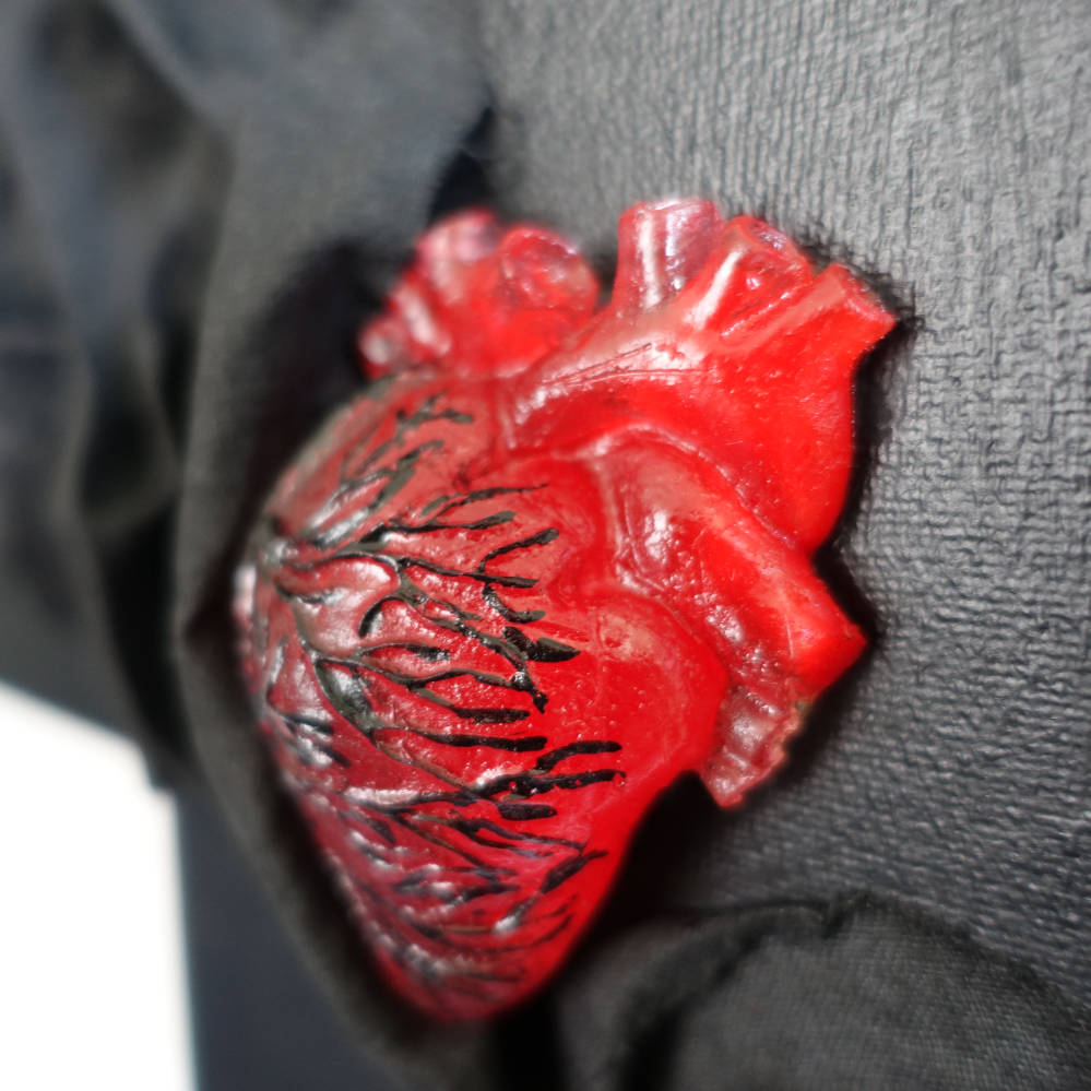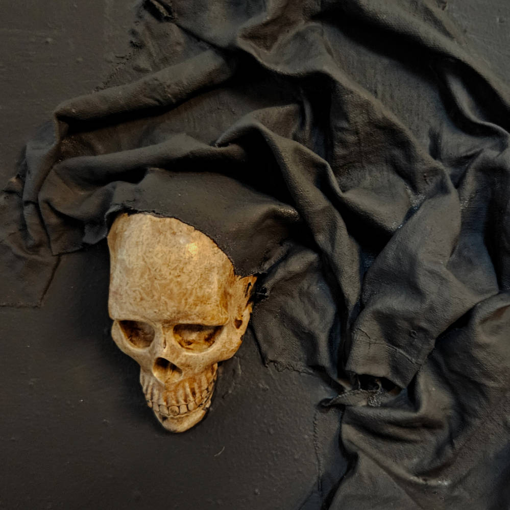 Die Kombination aus Herz und Totenschädel greift Themen wie Leben, Vergänglichkeit und emotionale Tiefe auf und macht das Gemälde zu einem kraftvollen Statement Piece. Durch die reliefartige Struktur, die Verwendung von echten Stoffelementen und den präzisen Einsatz der Resin-Details erhält das Werk eine besondere Dreidimensionalität und zieht alle Blicke auf sich.